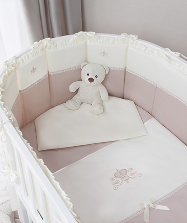 Нежная и элегантная, модель «Эстель» погружает в атмосферу эпохи Ренессанса. Пастельные тона, воздушное кружево, изящная вышивка и атласные ленты – каждая деталь создает настроение легкости. Комплект продуман до мелочей: Две простыни разных размеров и составной бампер, допускающий варианты сочетания частей, позволяют использовать комплект в круглой, и в овальной кроватке. Специальная форма подушки и одеяло с закругленными углами создают цельную композицию. А функциональность дополнительного кармана уже оценили многие родители (его можно использовать для хранения бутылочки или игрушек во время сна ребенка).